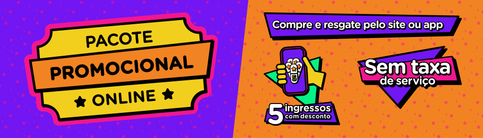 Um pacote de 5 ingressos de cinema com desconto, vendidos e resgatados exclusivamente ONLINE!